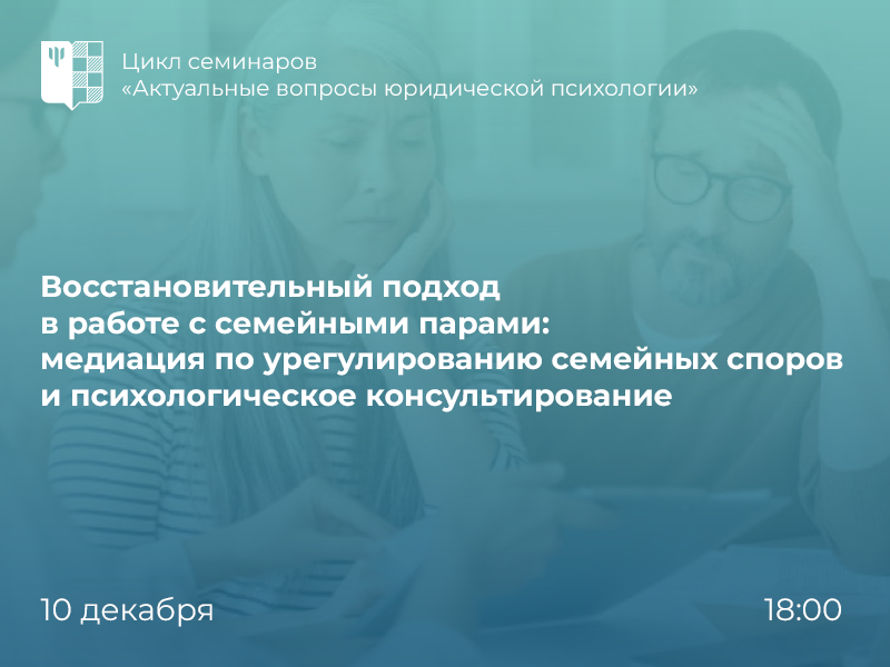 Семинар «Восстановительный подход в работе с семейными парами: медиация по урегулированию семейных споров и психологическое консультирование»