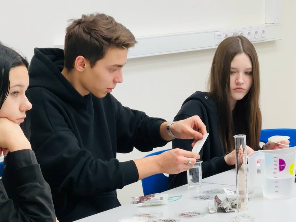 Вторая лабораторная оказалась настоящим детективом: ребята учились обнаруживать микропластик в воде с помощью обычного светового микроскопа. Оказалось, что даже без сложного оборудования можно увидеть то, что скрыто от глаз, если правильно подготовить образец.