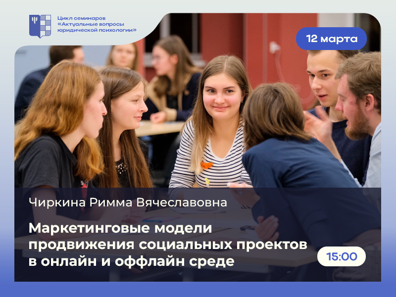 Маркетинговые модели продвижения социальных проектов в онлайн и оффлайн среде: семинар юридических психологов – 12 марта